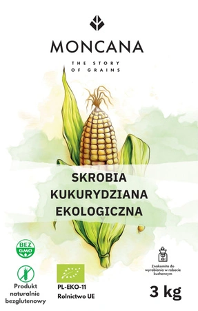 Ekologiczna skrobia kukurydziana bezglutenowa MONCANA 3 kg - teraz w większym, bardziej ekonomicznym opakowaniu!